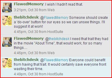 Earlier this week, Flawed Memory and I exchanged a few tweets about a ‘do-over’ button. We had seen a screening of About Time the week before which involves the trait of time travel.
